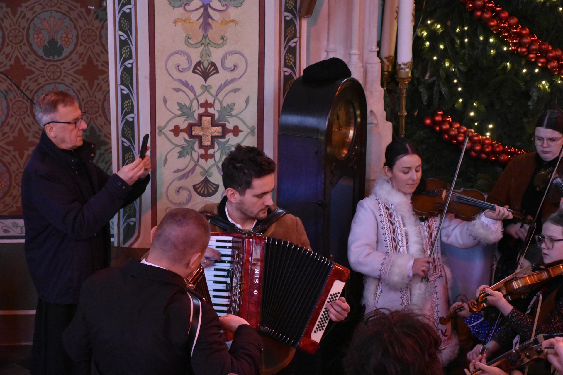 W czasie liturgii o 11.15, nasz ksiądz wiakariusz, Michał pochodzący z parafii Korpielorzy dołączył do muzyków, grając z nimi na akordeonie.