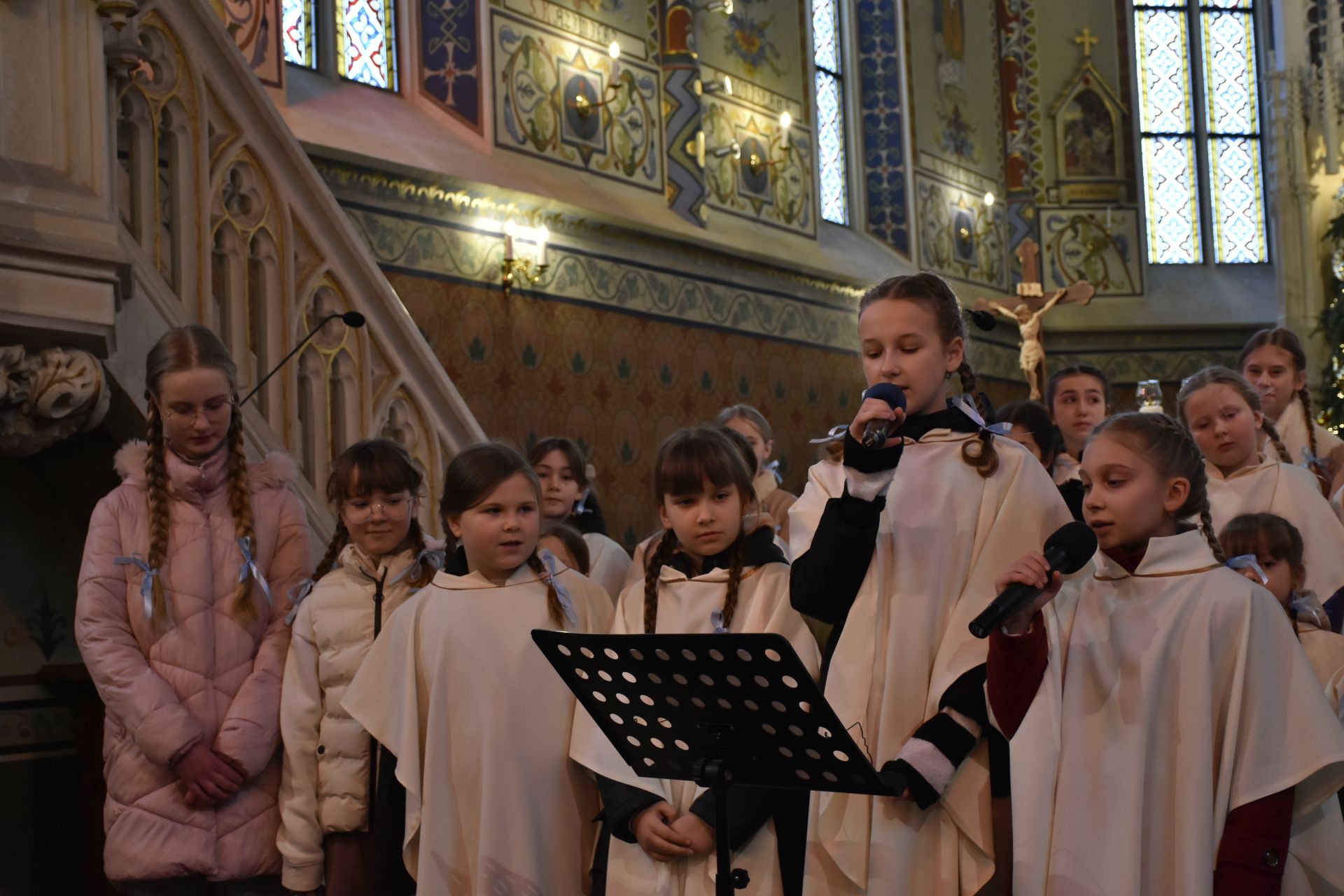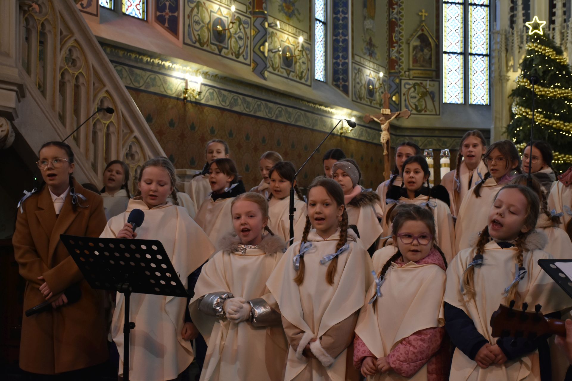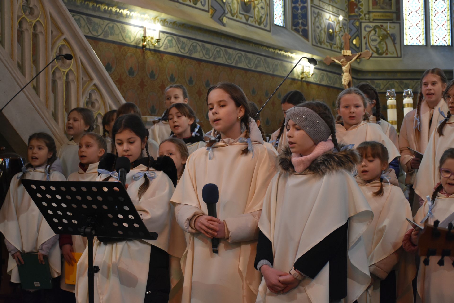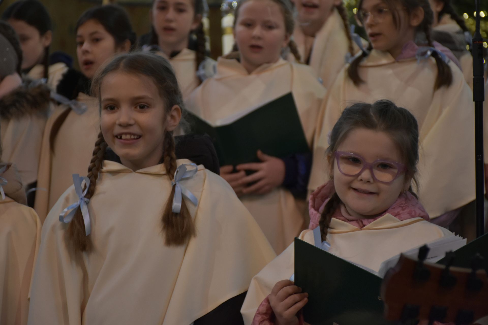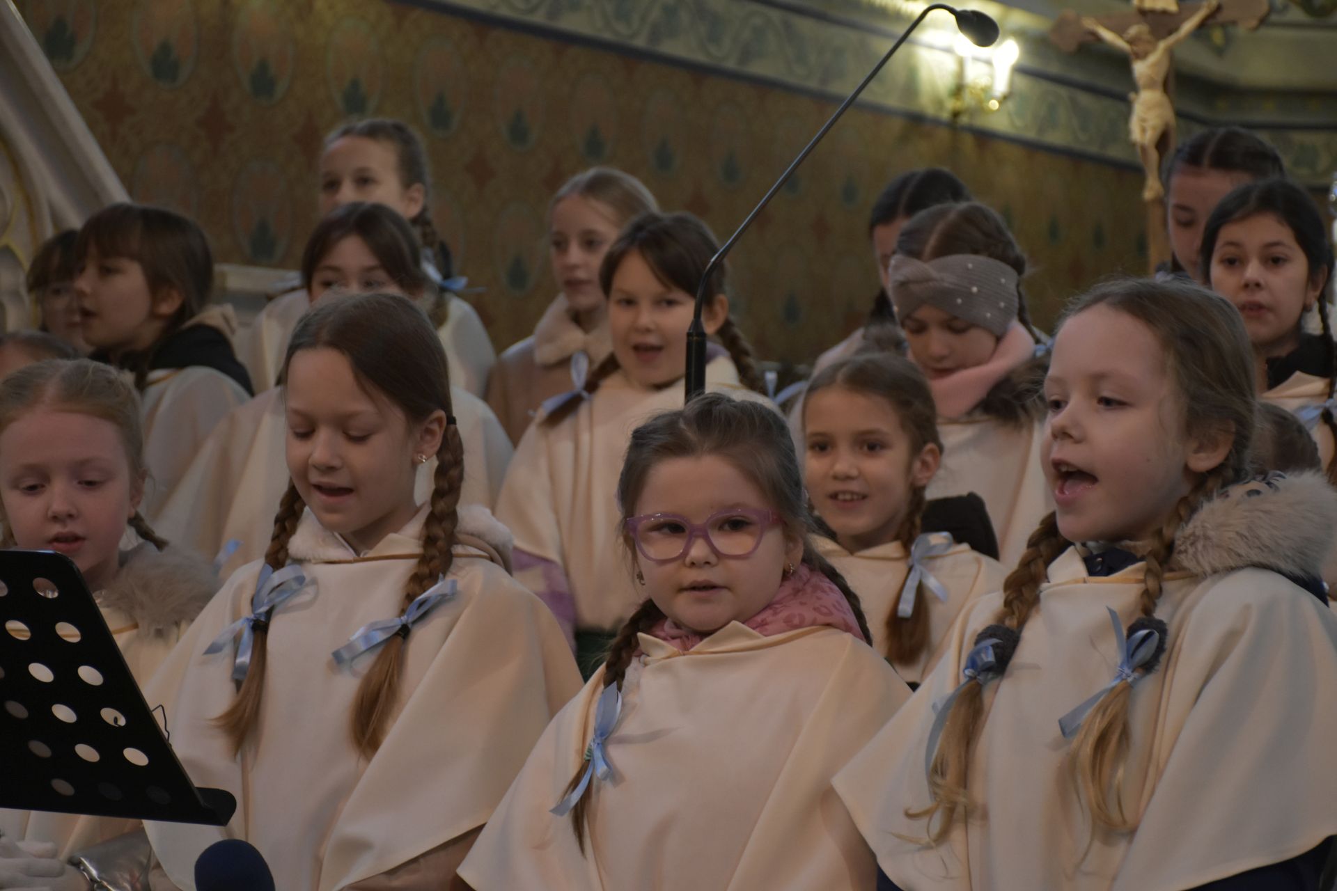W minioną niedzielę 25 stycznia nasz kościół parafialny wypełnił się radosnym śpiewem i świąteczną atmosferą. Wszystko za sprawą wyjątkowej oprawy Mszy św. o godzinie 11.15, a po niej koncertu kolęd i pastorałek w wykonaniu scholi „Perełki Maryi”. W repertuarze znalazły się również utwory pierwszy raz wykonane w naszym kościele.