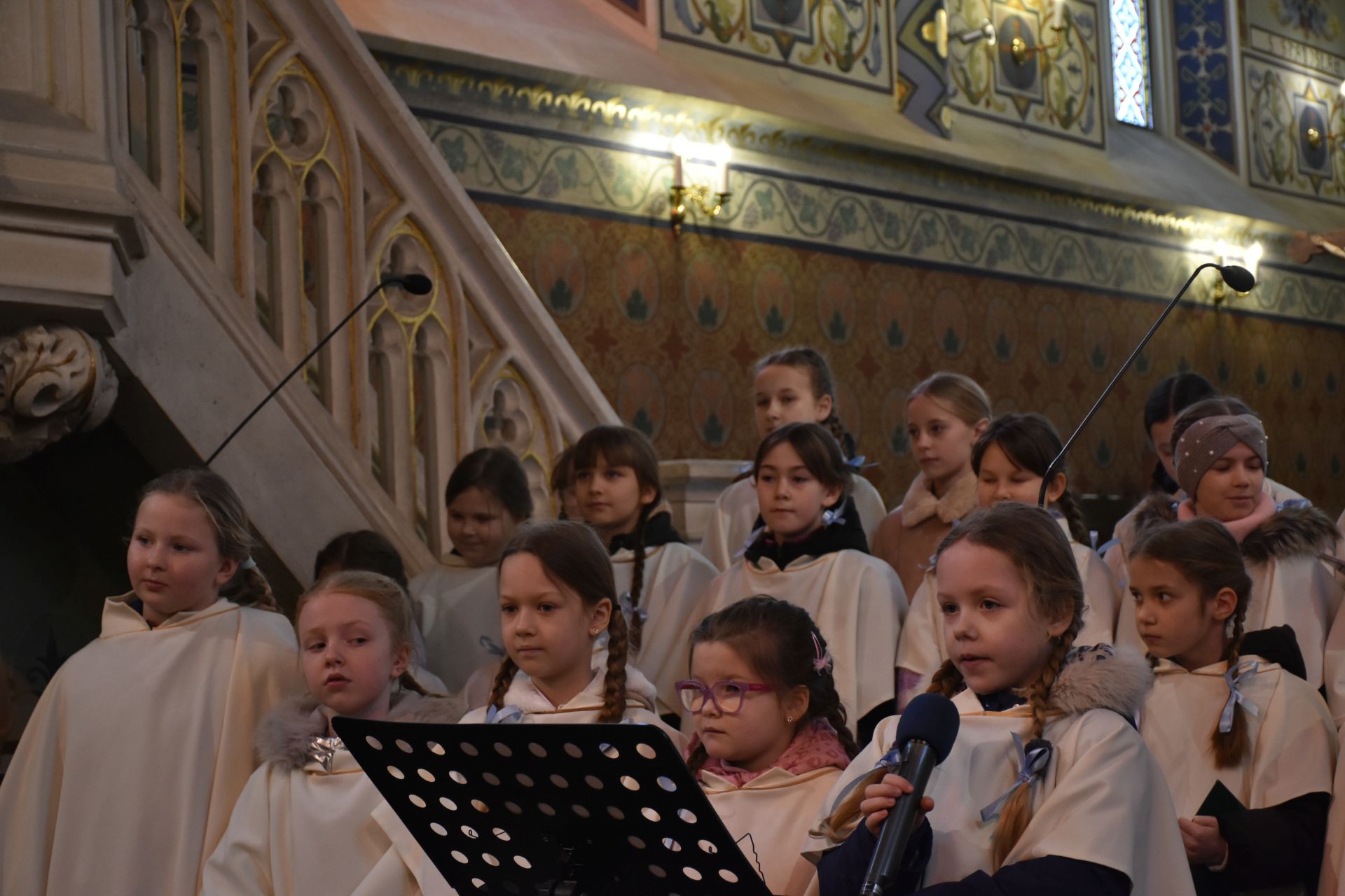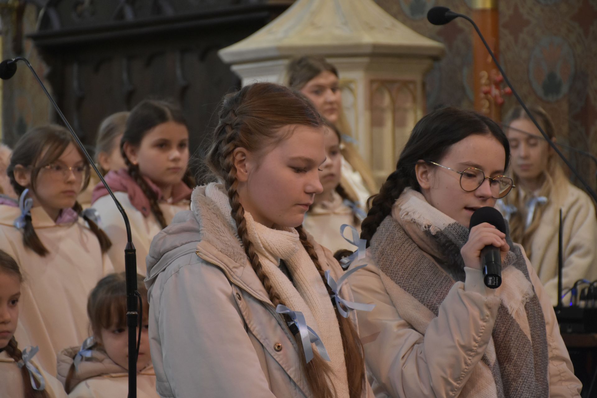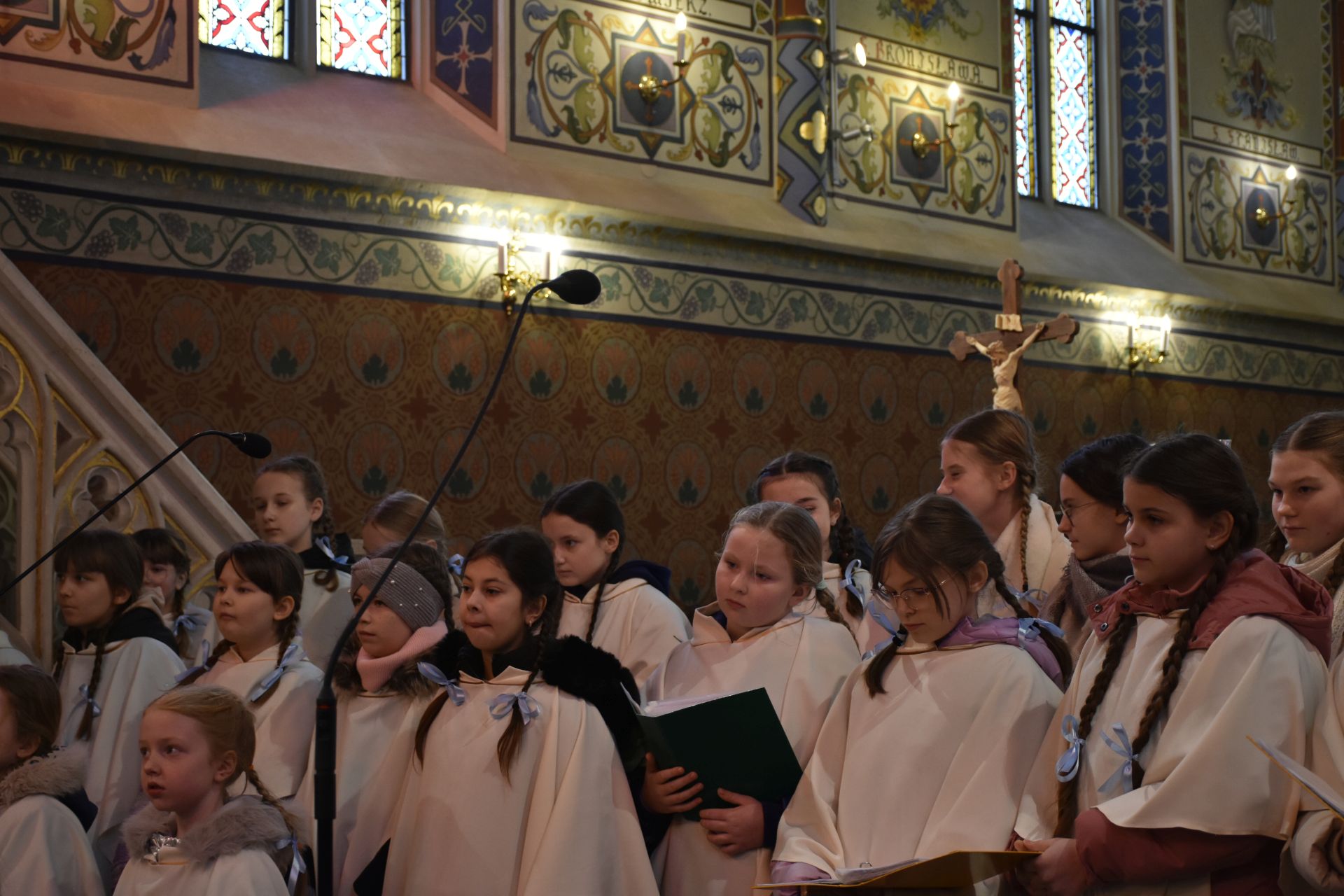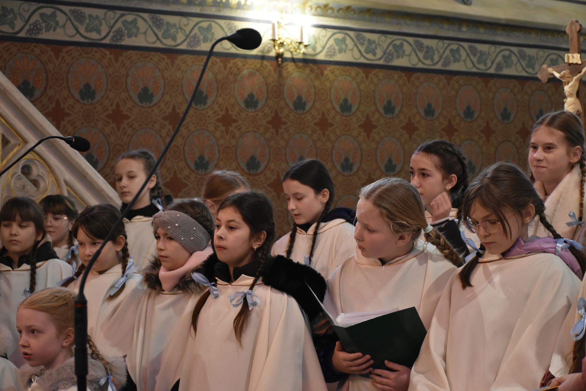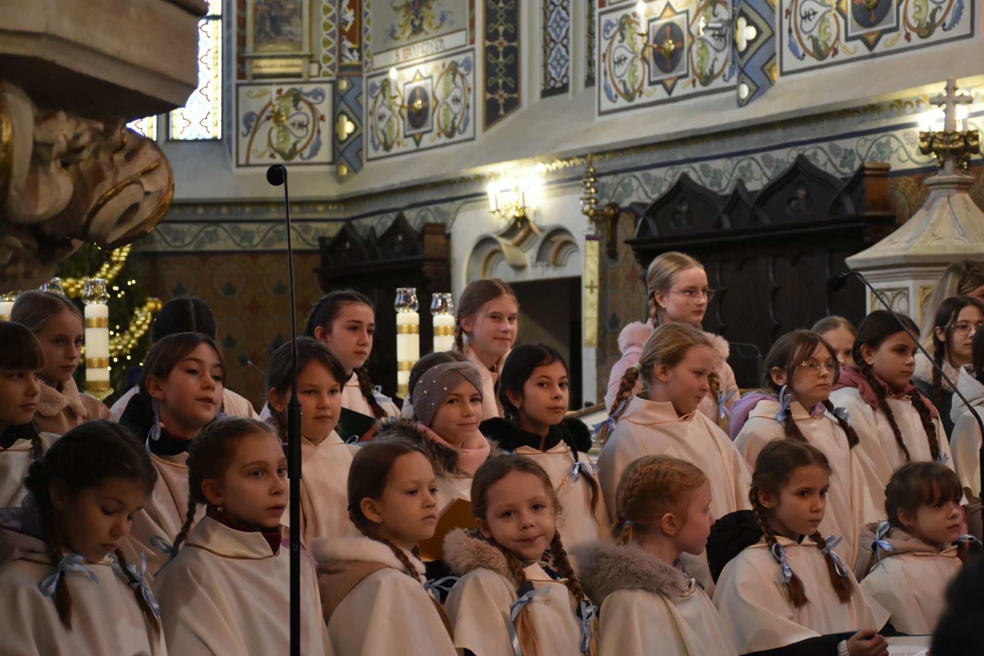 W minioną niedzielę 25 stycznia nasz kościół parafialny wypełnił się radosnym śpiewem i świąteczną atmosferą. Wszystko za sprawą wyjątkowej oprawy Mszy św. o godzinie 11.15, a po niej koncertu kolęd i pastorałek w wykonaniu scholi „Perełki Maryi”. W repertuarze znalazły się również utwory pierwszy raz wykonane w naszym kościele.