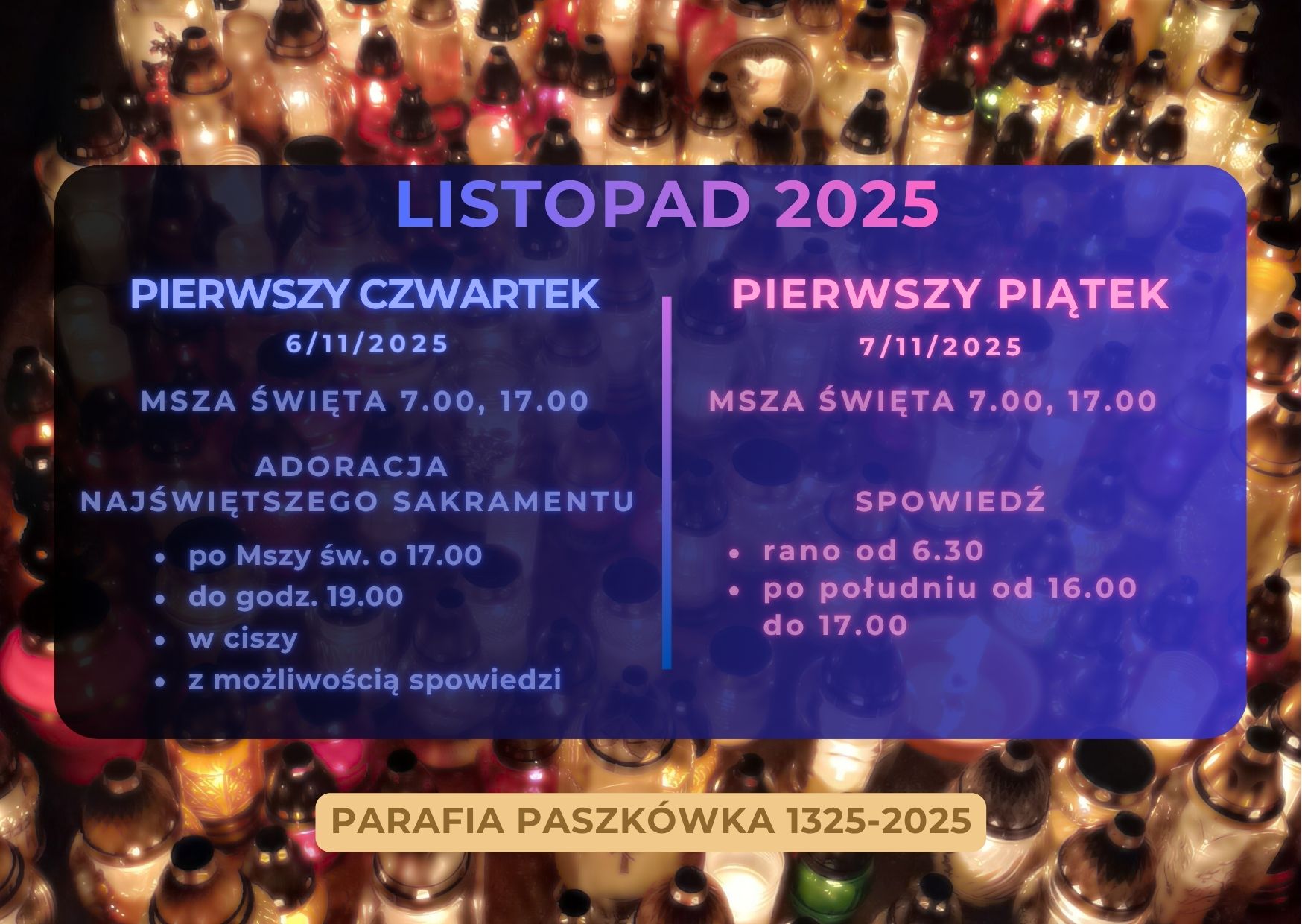 Serdecznie zapraszamy do wspólnej modlitwy w pierwszy czwartek i piątek listopada 2025.