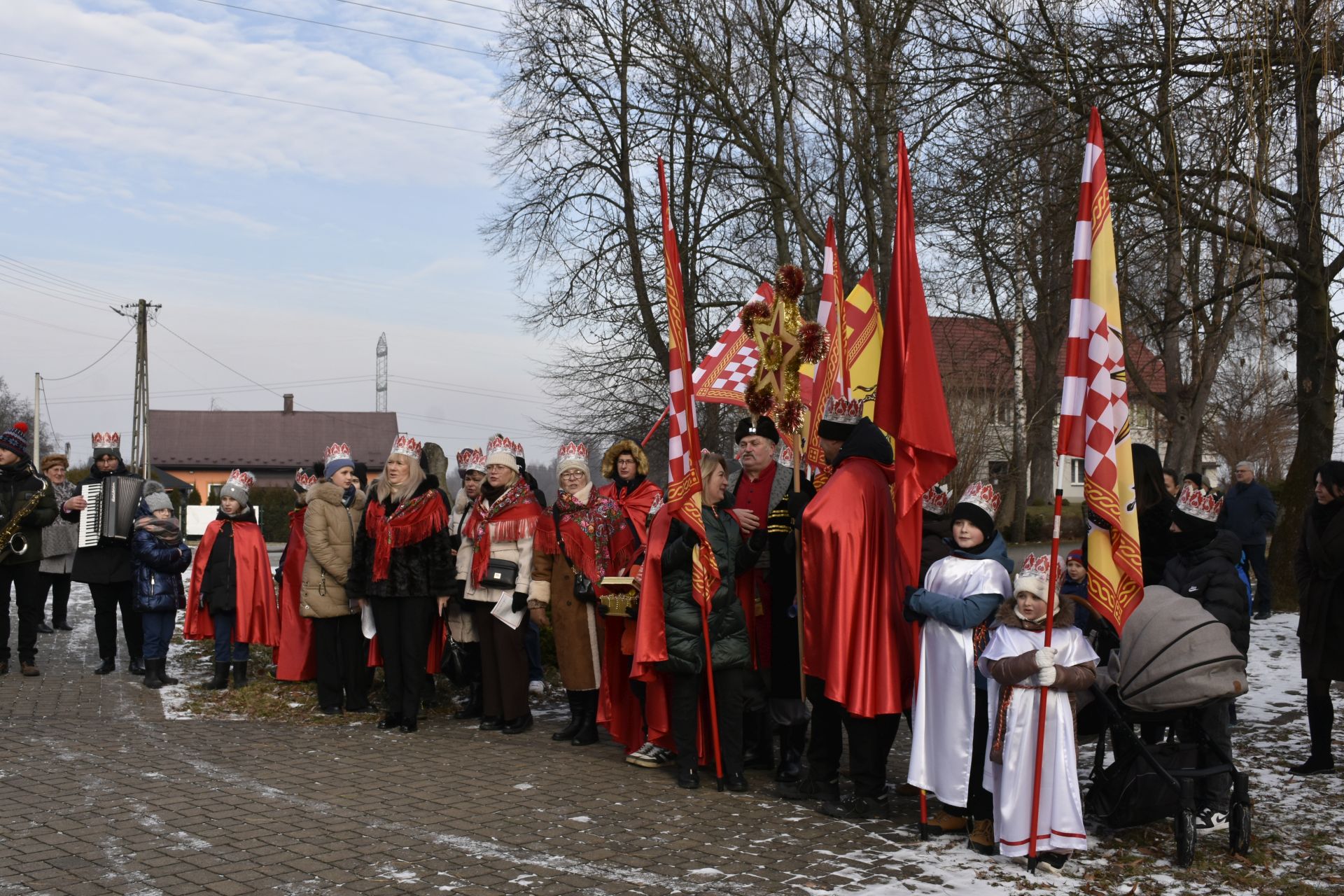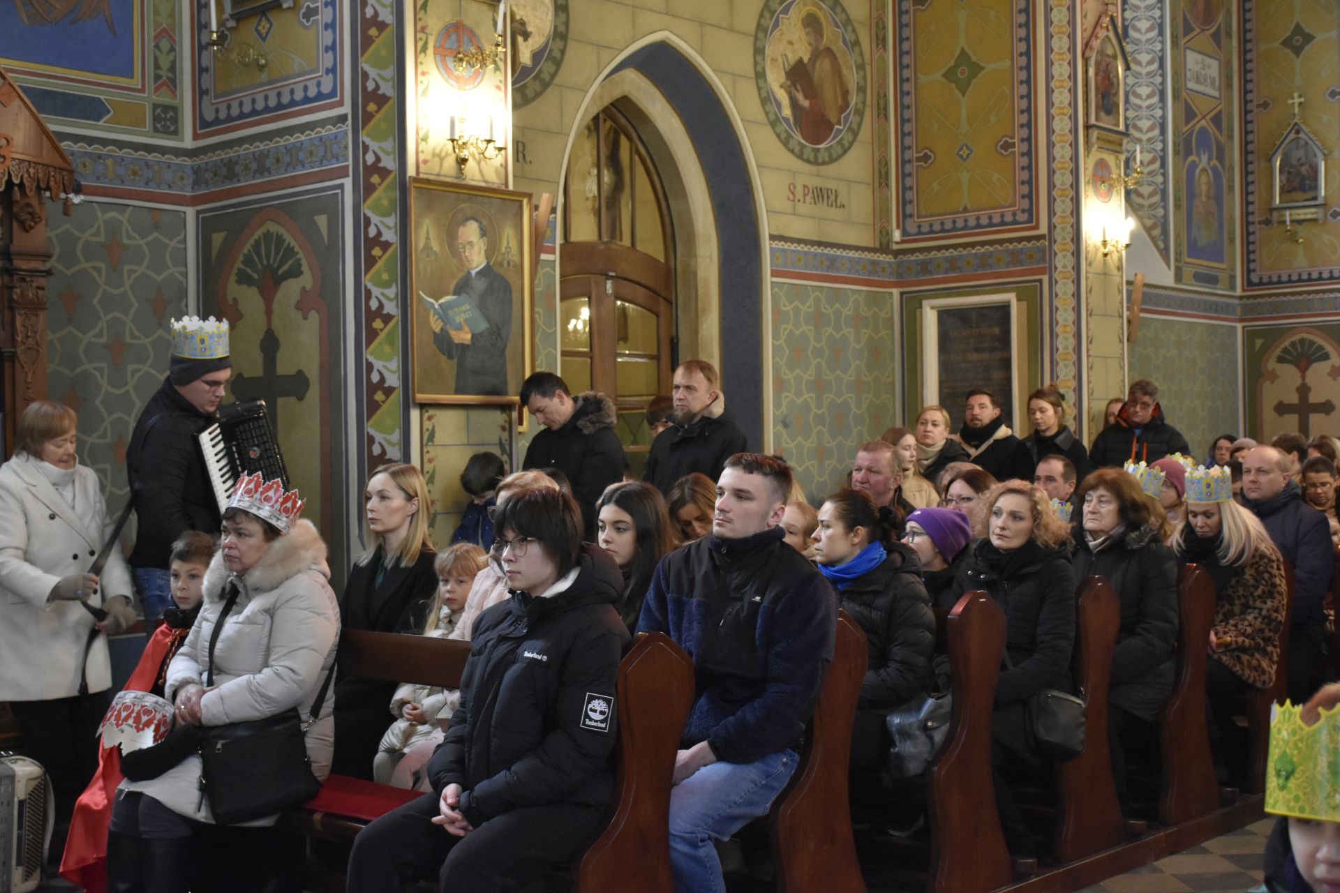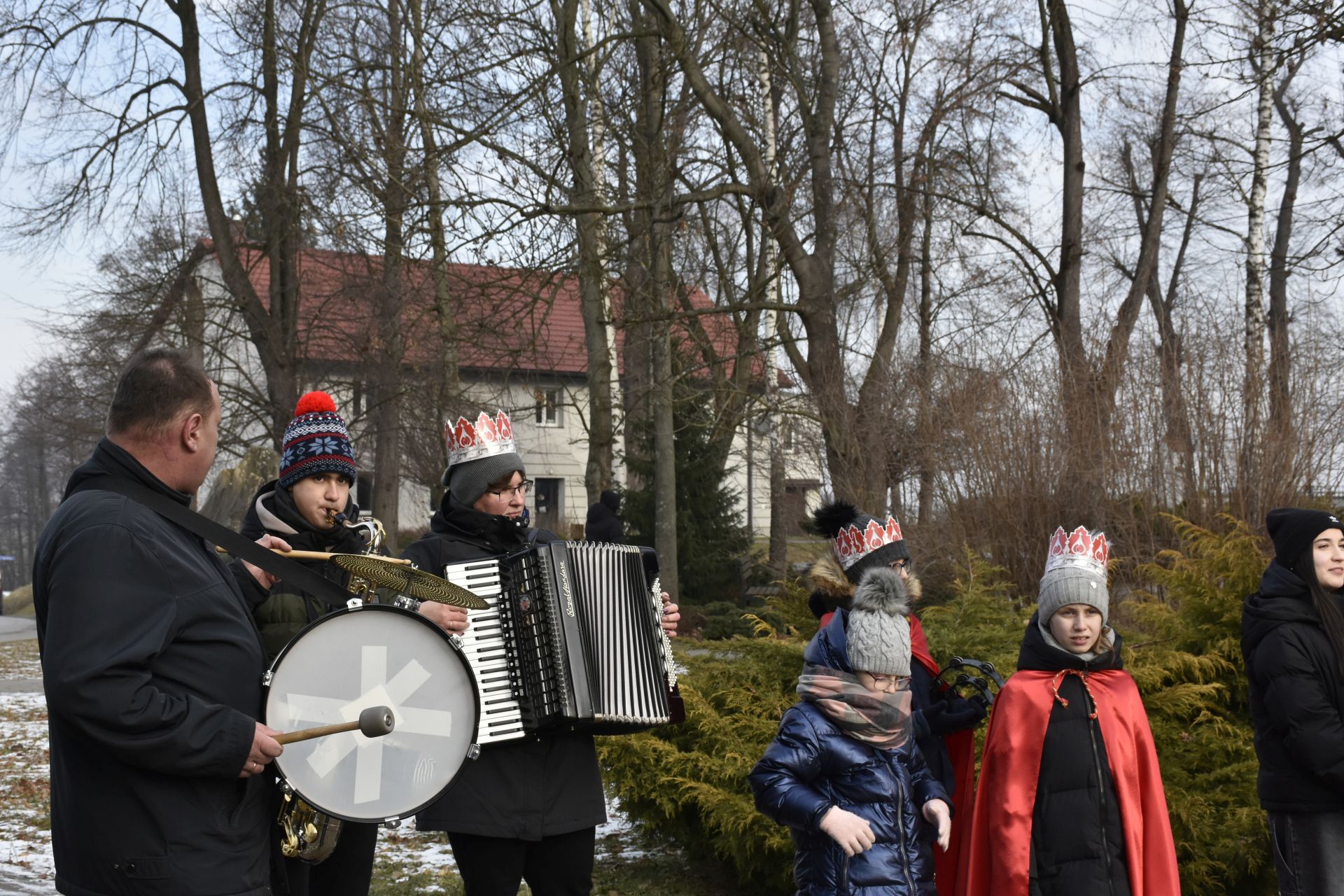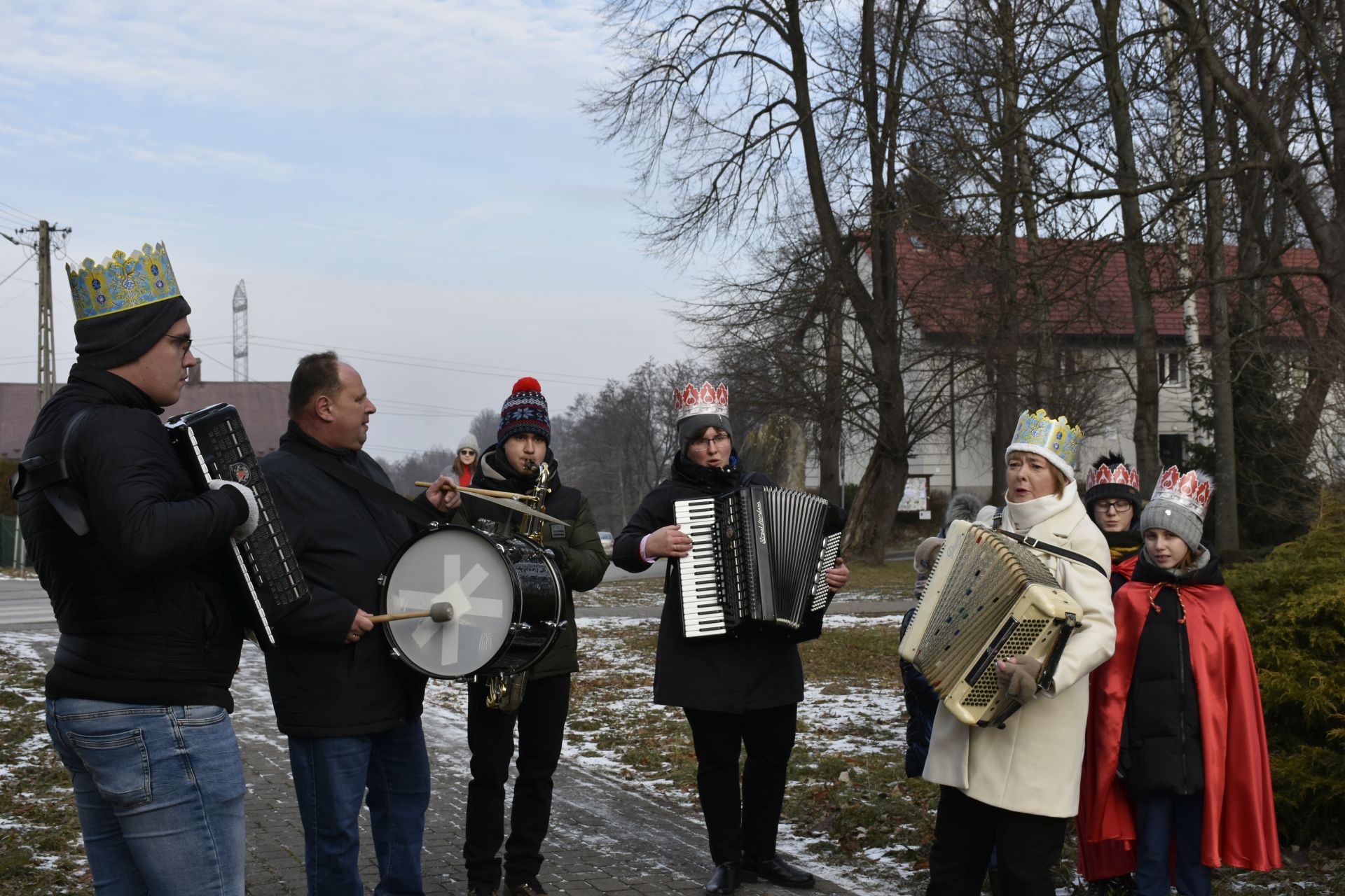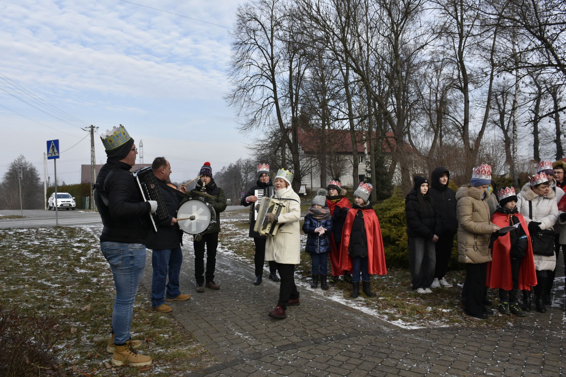 Msza miała niezwykłą oprawę muzyczną – na początku wysłuchaliśmy pastorałki orszakowej „Niech spadnie nam korona z głowy…” w wykonaniu scholistek Wiktorii i Alicji, a z wiernymi grała i śpiewała kapela z akordeonami stworzona na szybko, aby zastąpić chorego pana organistę.