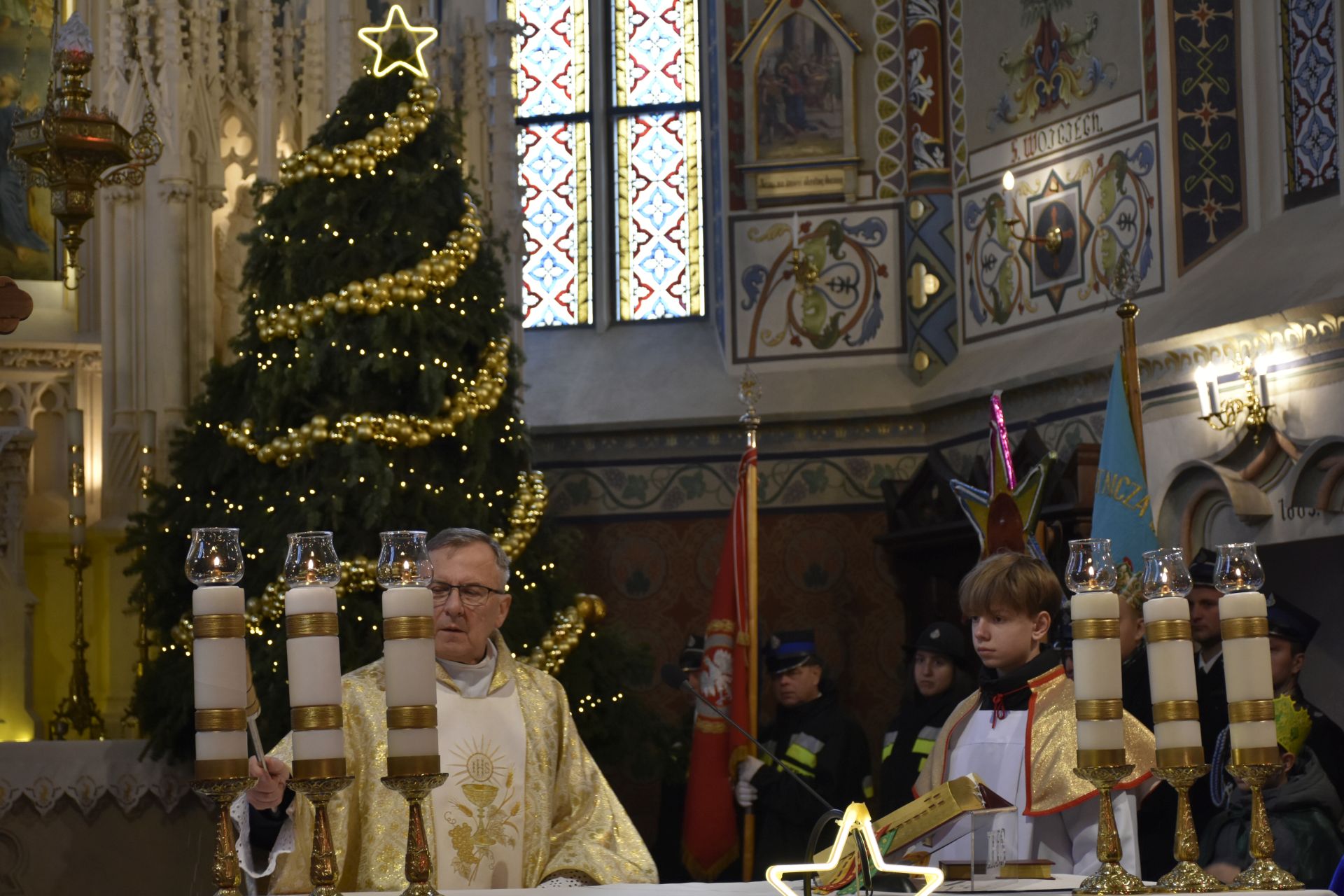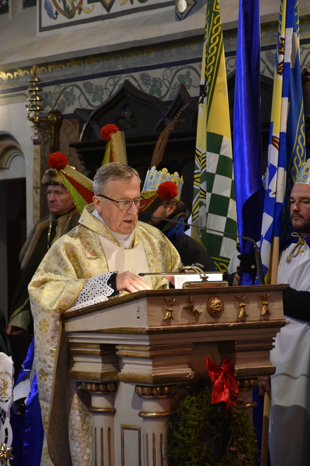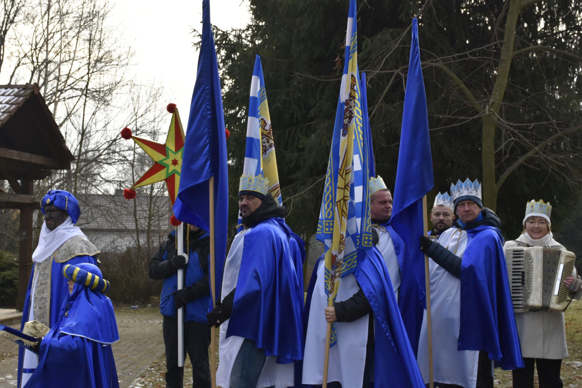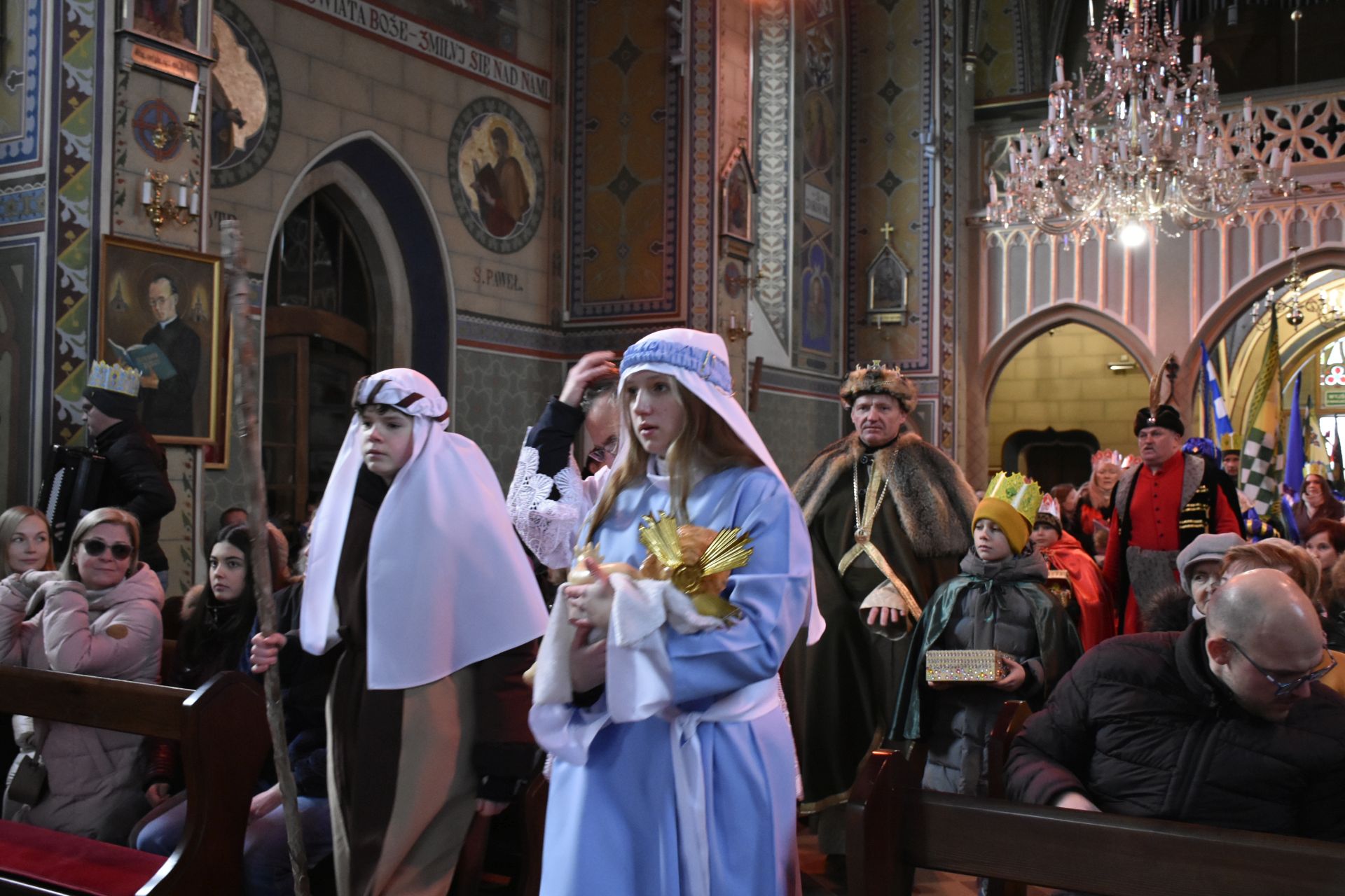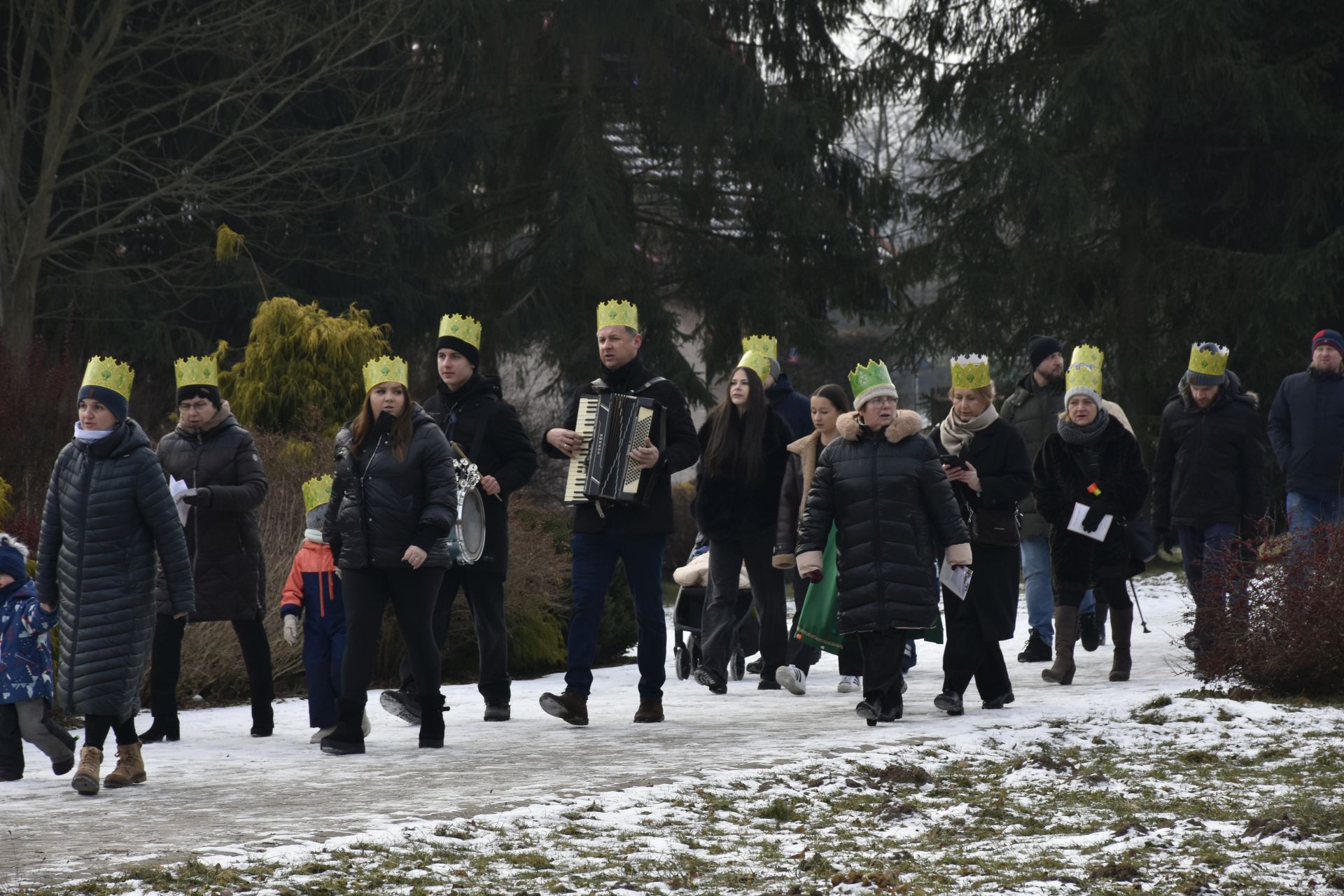 Msza miała niezwykłą oprawę muzyczną – na początku wysłuchaliśmy pastorałki orszakowej „Niech spadnie nam korona z głowy…” w wykonaniu scholistek Wiktorii i Alicji, a z wiernymi grała i śpiewała kapela z akordeonami stworzona na szybko, aby zastąpić chorego pana organistę.