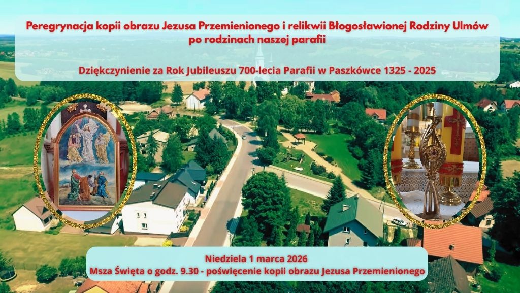 W poniedziałek 29 lipca 2024 roku podczas Mszy Świętej o godz. 18.00 zostały wprowadzone do naszego kościoła relikwie błogosławionej Rodziny Ulmów – Józefa i Wiktorii oraz ich siedmiorga dzieci: Stasi, Basi, Władzia, Franusia, Antosia, Marysi i dziecka, które w chwili egzekucji przyszło na świat.