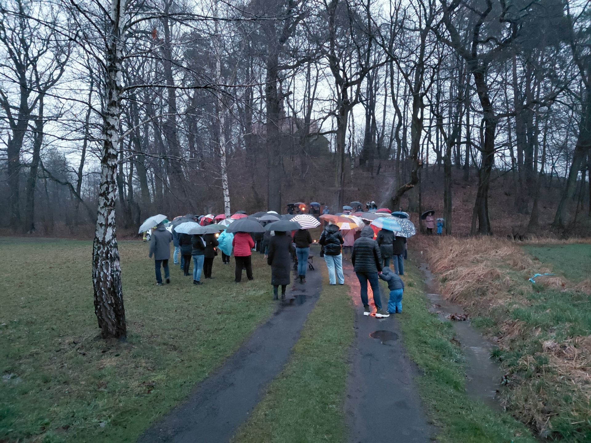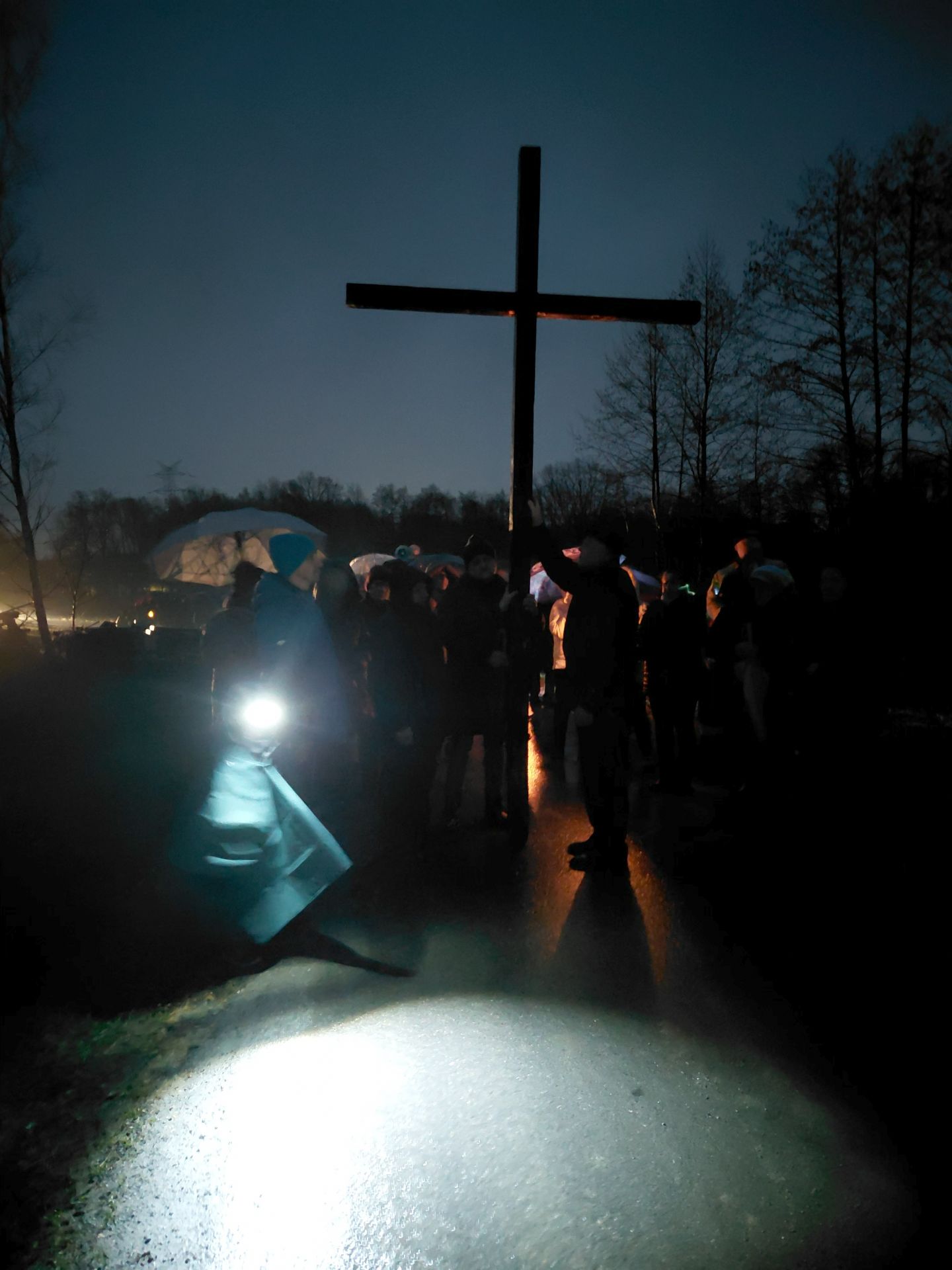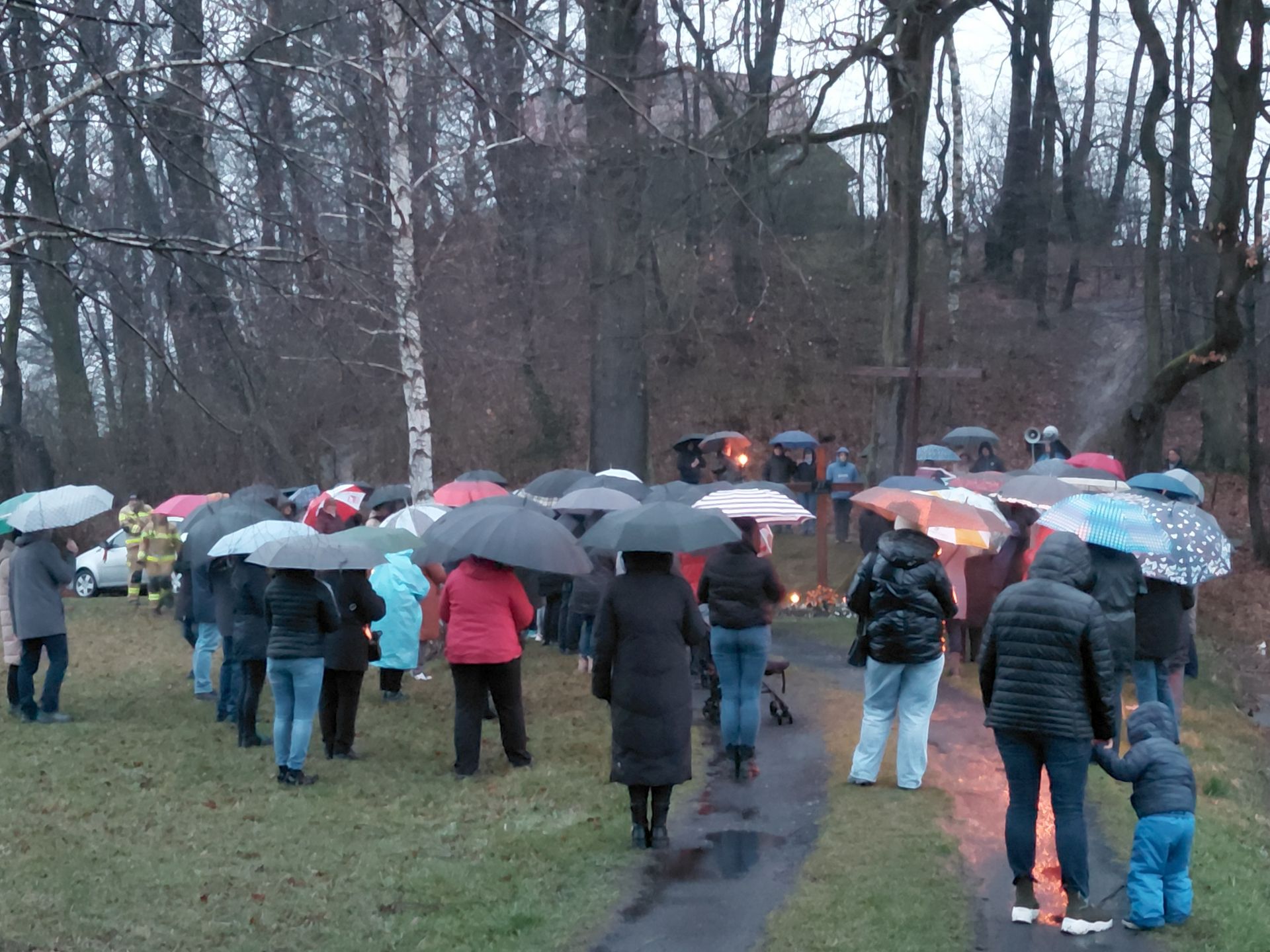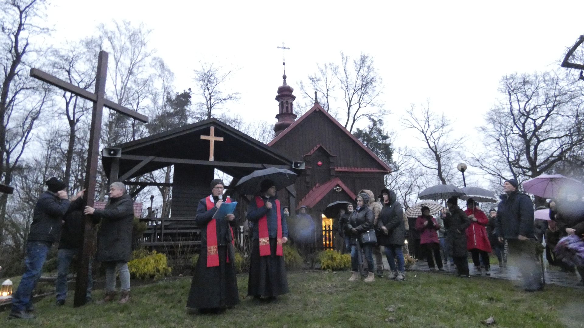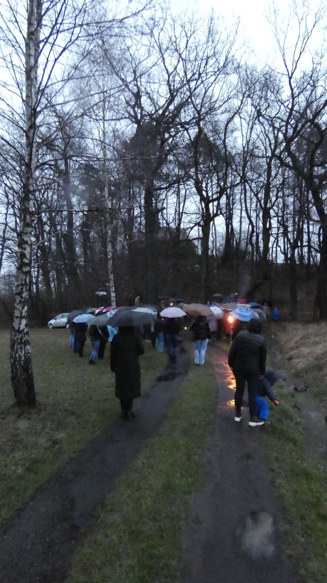 Drogę Krzyżową rozpoczęliśmy w sosnowickim kościółku, od modlitwy przed cudownym obrazem Matki Bożej. Mimo niesprzyjającej pogody – deszczu, deszczu ze śniegiem i zimna, wielu parafian uczestniczyło w nabożeństwie idąc w skupieniu trasą Parafialnej Drogi Krzyżowej.