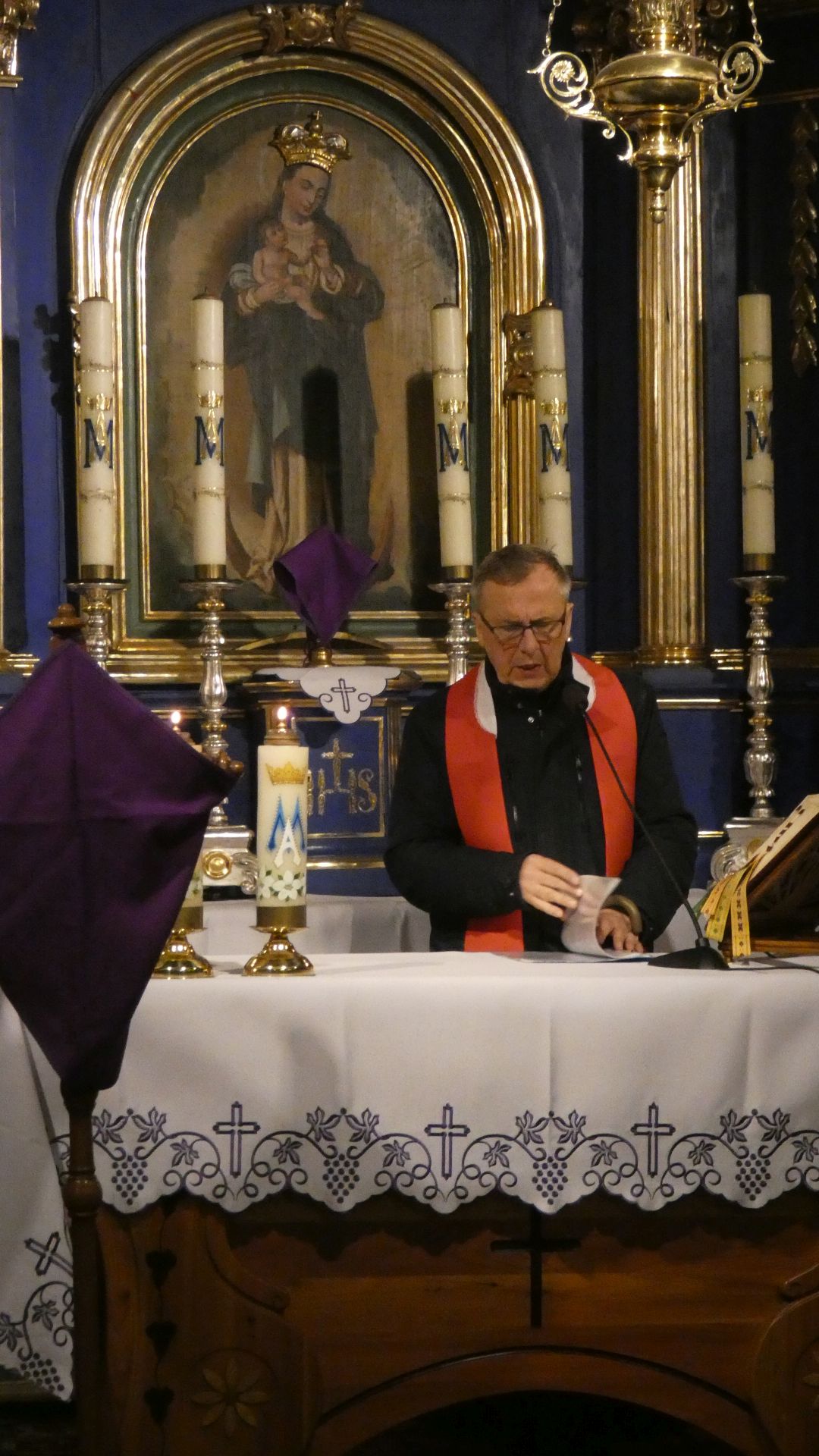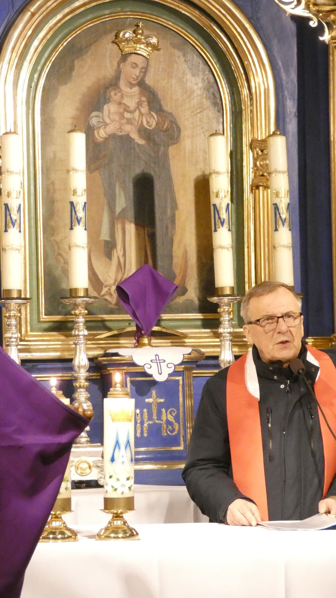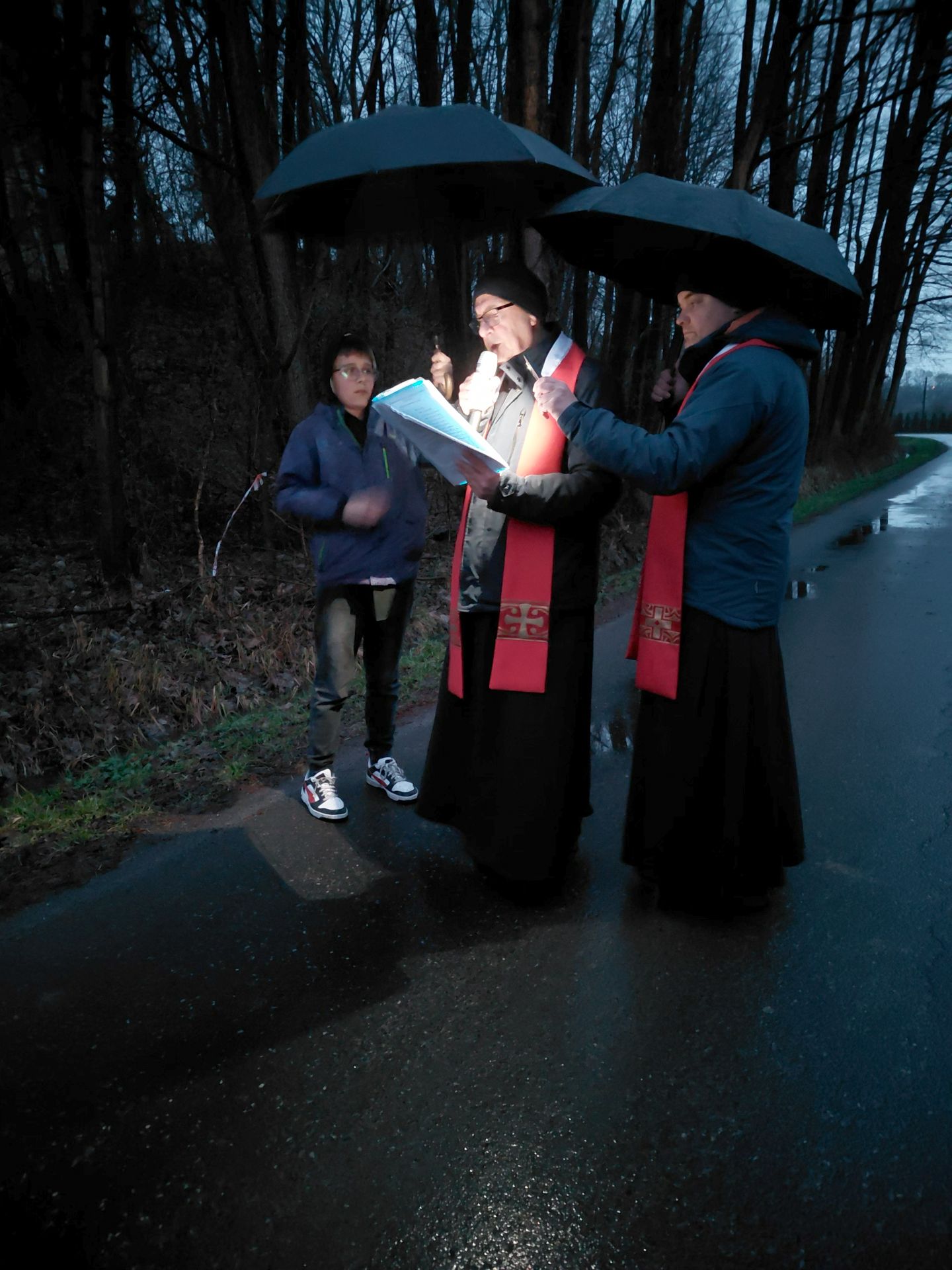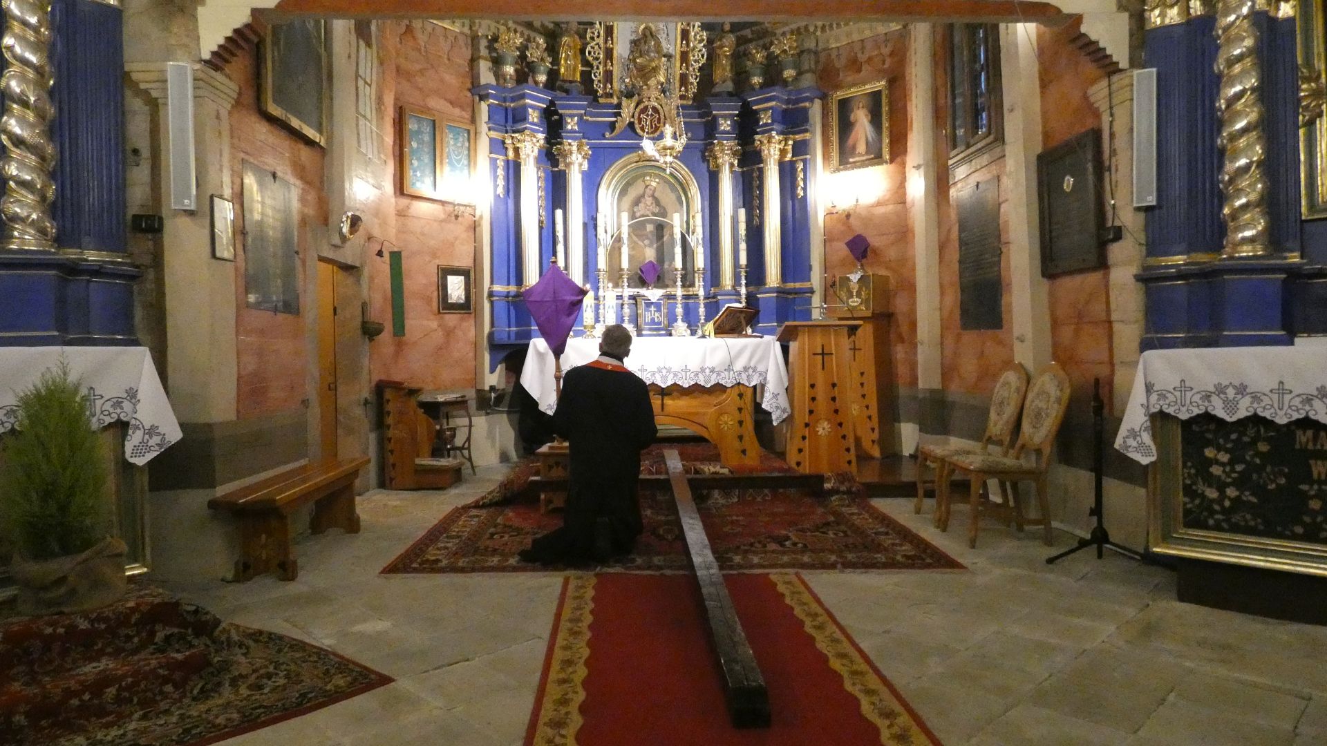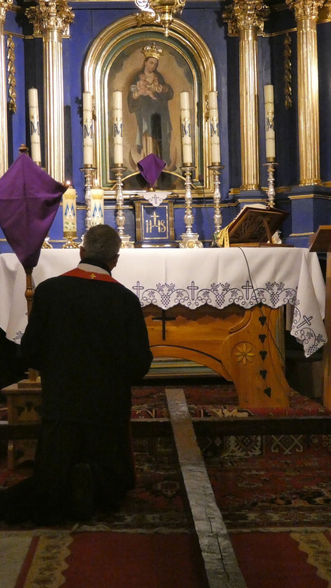 Drogę Krzyżową rozpoczęliśmy w sosnowickim kościółku, od modlitwy przed cudownym obrazem Matki Bożej. Mimo niesprzyjającej pogody – deszczu, deszczu ze śniegiem i zimna, wielu parafian uczestniczyło w nabożeństwie idąc w skupieniu trasą Parafialnej Drogi Krzyżowej.