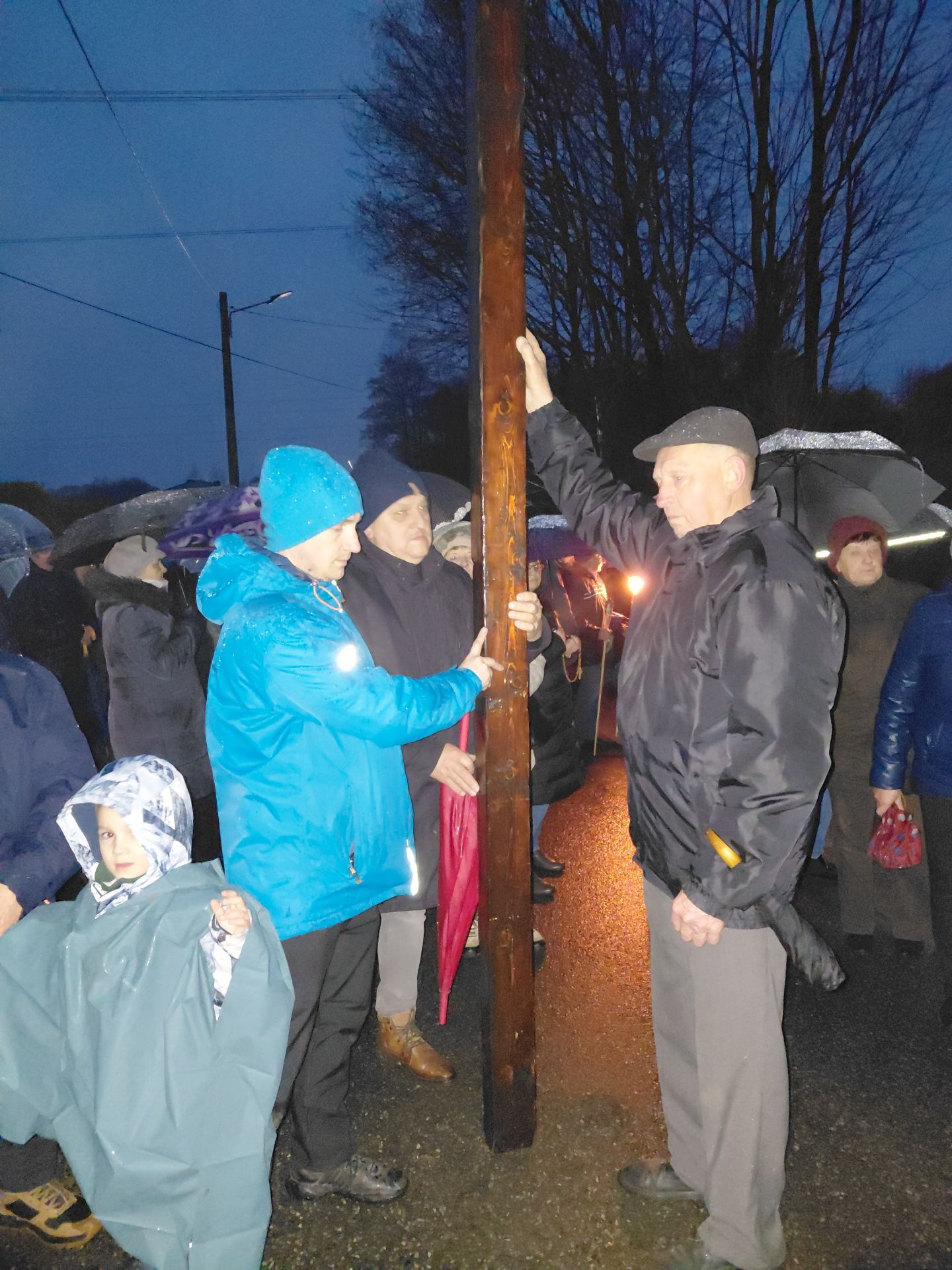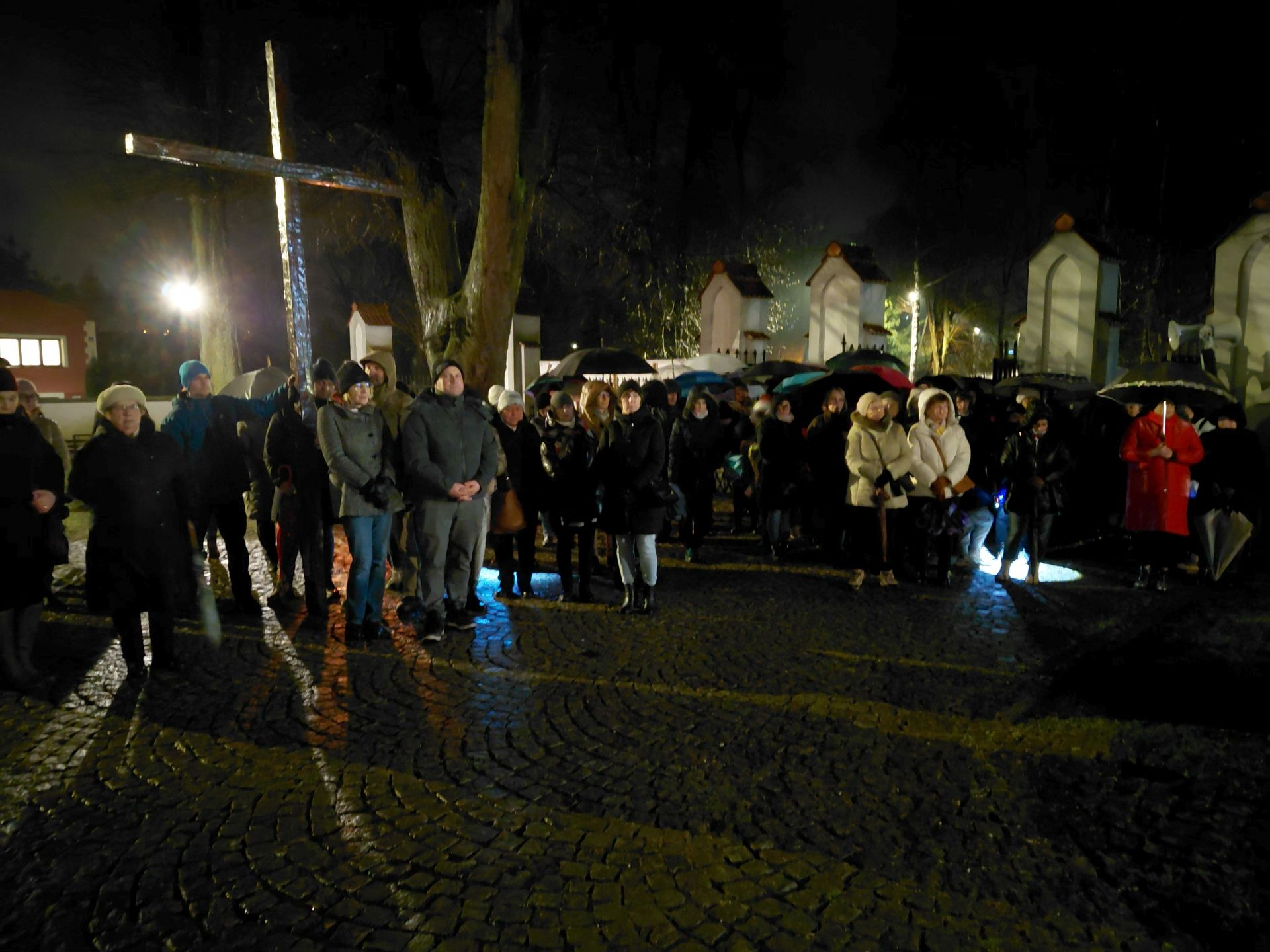 Pomiędzy kolejnymi stacjami krzyż nieśli przedstawiciele grup parafialnych. Rozważania czytał ksiadz proboszcz, a ksiądz wikariusz prowadził modlitwy i śpiew.