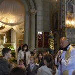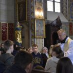 Nasza fotorelacja pochodzi z błogosławieństwo pokarmów na stół wielkanocny o godzinie 12.00. Obrzędom przewodniczył ksiądz proboszcz, który w wyjątkowy sposób zaangażował najmłodszych parafian, przybliżając im znaczenie symboli znajdujących się w wielkanocnych koszyczkach. Najbardziej poruszającym momentem spotkania była wspólna modlitwa – ksiądz proboszcz wraz z dziećmi klęknął przed Grobem Pańskim, by oddać pokłon Jezusowi. To radosne i pełne wiary spotkanie było dla wszystkich zgromadzonych pięknym przygotowaniem do nadchodzących Świąt Zmartwychwstania.