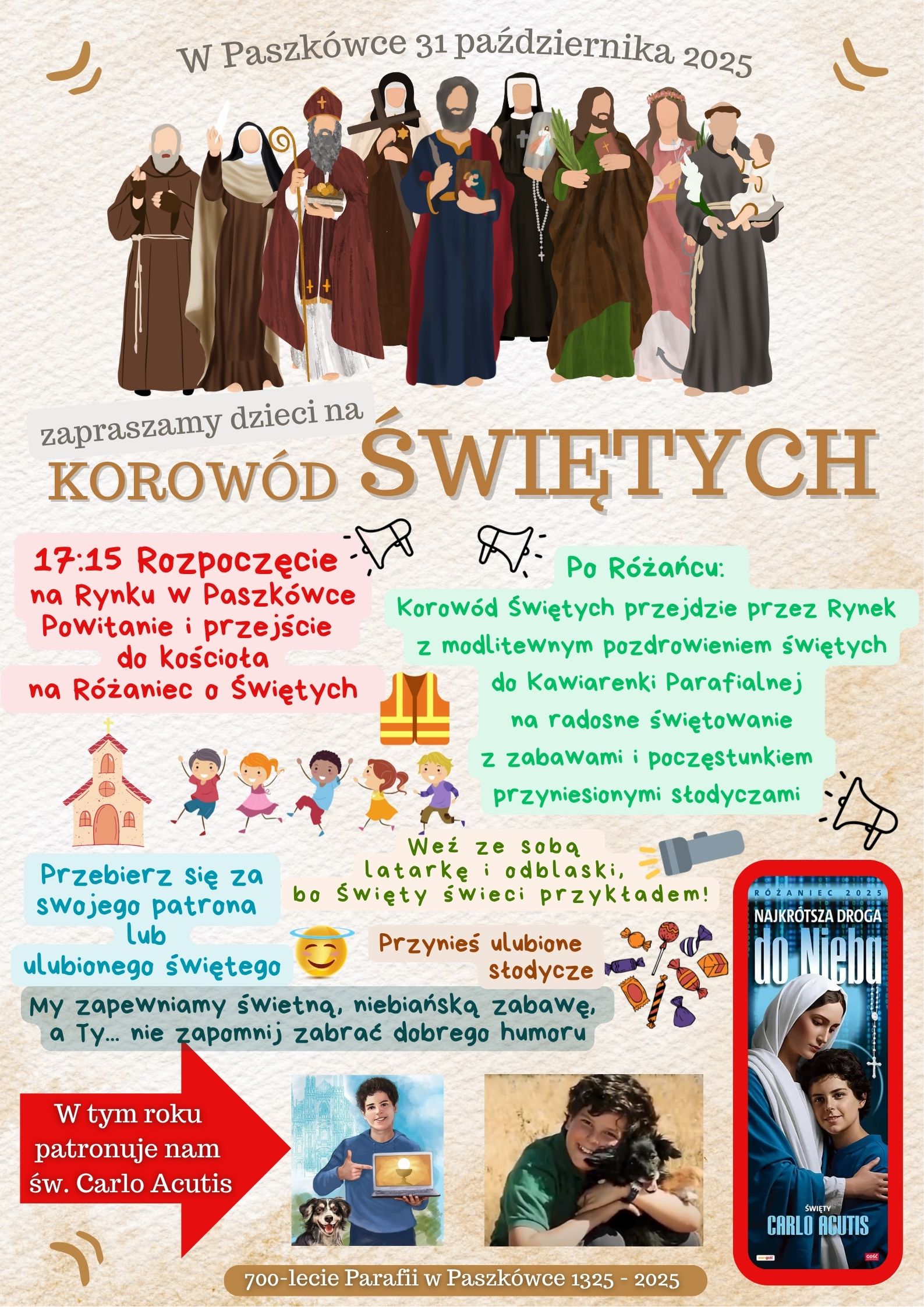 W piątek 31 października zapraszamy dzieci na Korowód Świętych, czyli radosną wigilię uroczystości Wszystkich Świętych.